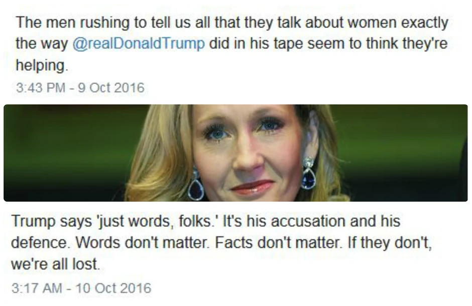 Nije tajna da britanska spisateljica Džoan Rouling, poznata po knjigama o čarobnjaku Hariju Poteru, ne voli predsednika SAD, Donalda Tramp, i politiku koju propagira, a to govore i njeni tvitovi.