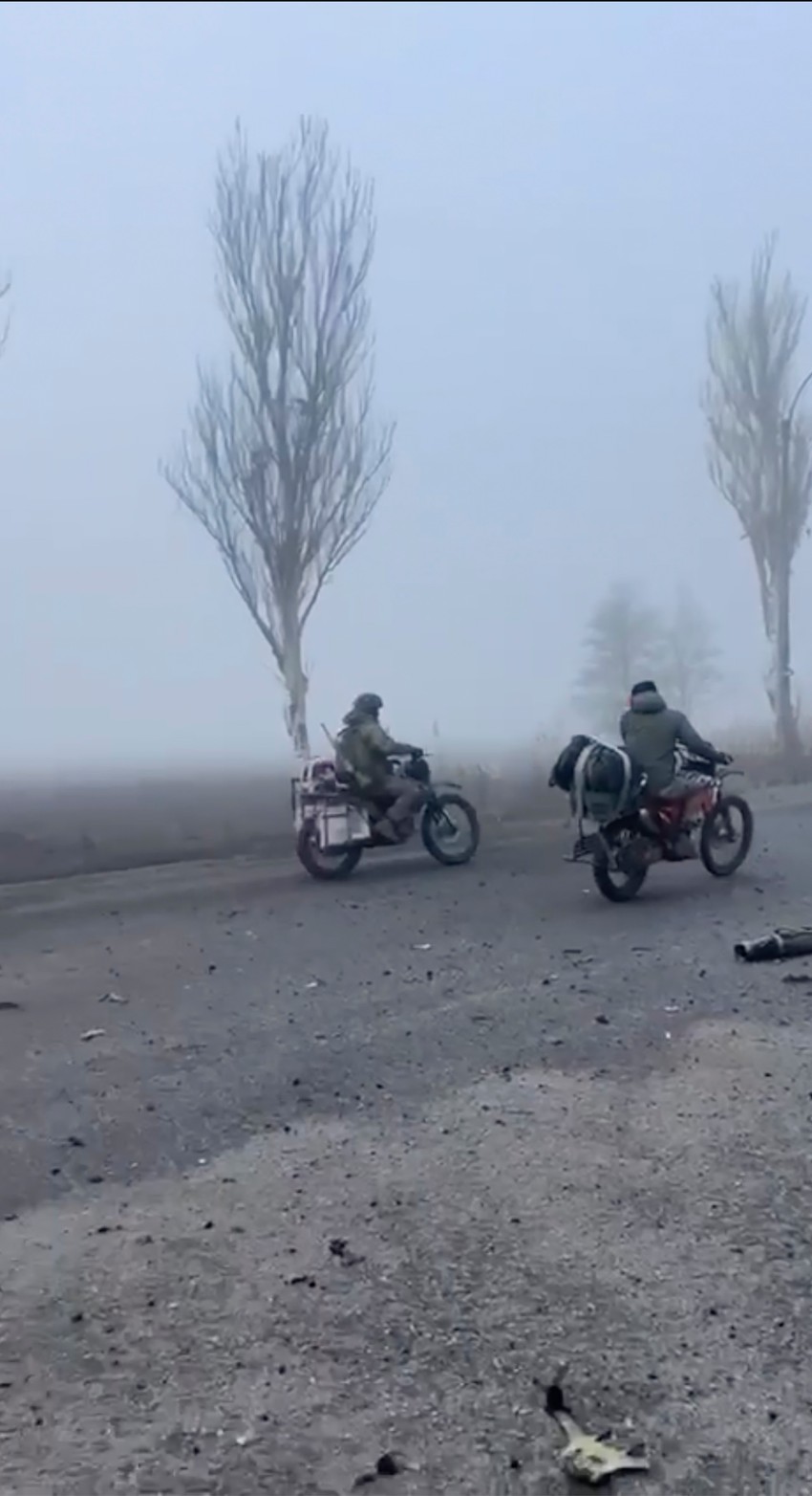 Pojavio se snimak za koji ruski vojni blogeri kažu da prikazuje trupe ruskog predsednika Vladimira Putina kako u koloni uništenih vozila ulaze u Pokrovsk, koristeći put prekriven ruševinama i maglom. Neki od njih sede na krovovima oštećenih vozila, dok se pored puta može videti oboreni dron. Mnogi na društvenim mrežama upoređuju scene sa filmom "Pobesneli Maks", izveštava "Dejli mejl".