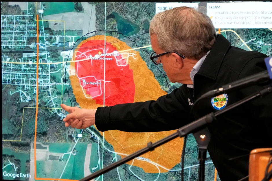 Gradonačelnik Trent Konavej rekao je da želi da uveri 4.700 stanovnika tog grada da su bezbedni. Međutim, mnogo toga ostaje nepoznato o opasnostima koje predstavljaju toksini po zdravlje ljudi, rekli su stručnjaci. Mnogi stanovnici su se žalili na glavobolje, mučnine i nadražene oči.