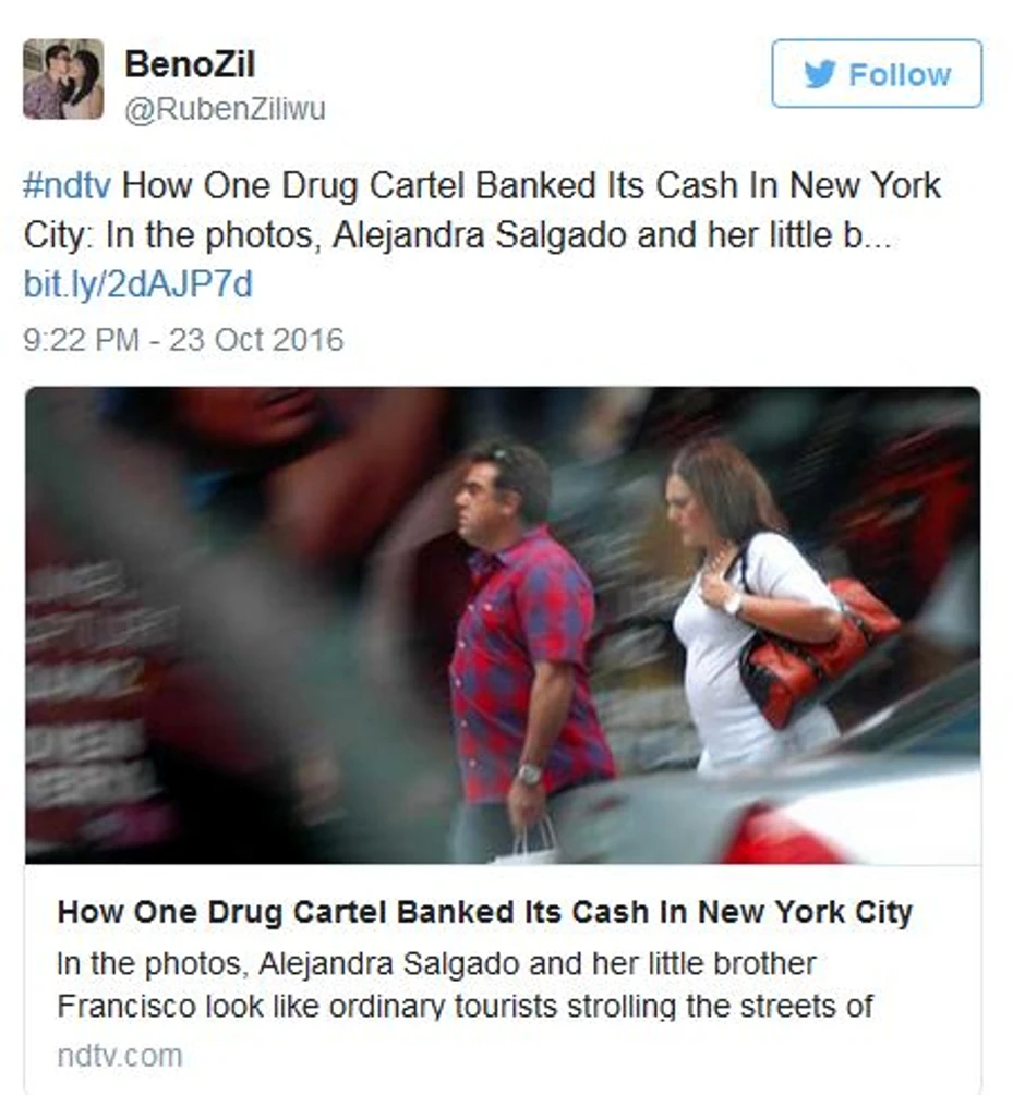 Istragom je utvrđeno da je sestru i brata Salgados za pranje novca angažovao zloglasni meksički narko kartel Sinaloa. Svakog mjseca trebalo je oprati oko milion dolara prikupljenih preprodajom droge.