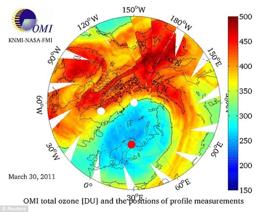 Sloj ozona koji nas štiti od štetnog sunčevog zračenja rekordno se smanjio iznad Arktika, upozoravaju stručnjaci. Za njegovo smanjenje od 40 odsto oni krive kombinaciju duge, hladne zime i zadržavanje hlorofluorokarbonata u atmosferi.