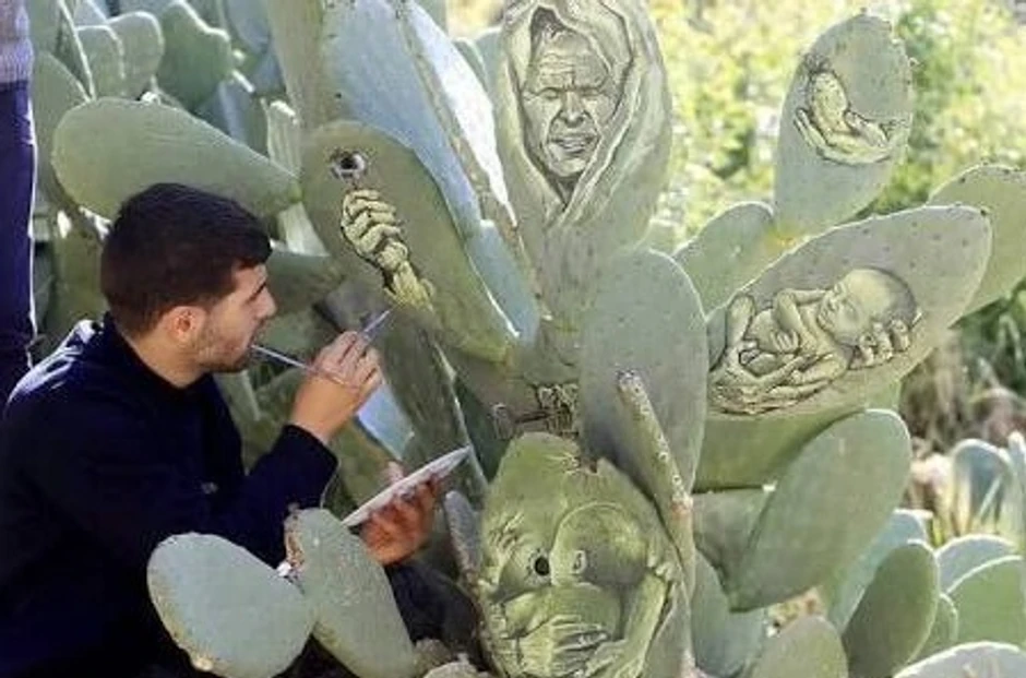 Slikar iz Palestine, Ahmed Muhamed Jasin, postao je poznat po tome što svoja umetnička dela ne stvara na platnu, već na kaktusu.