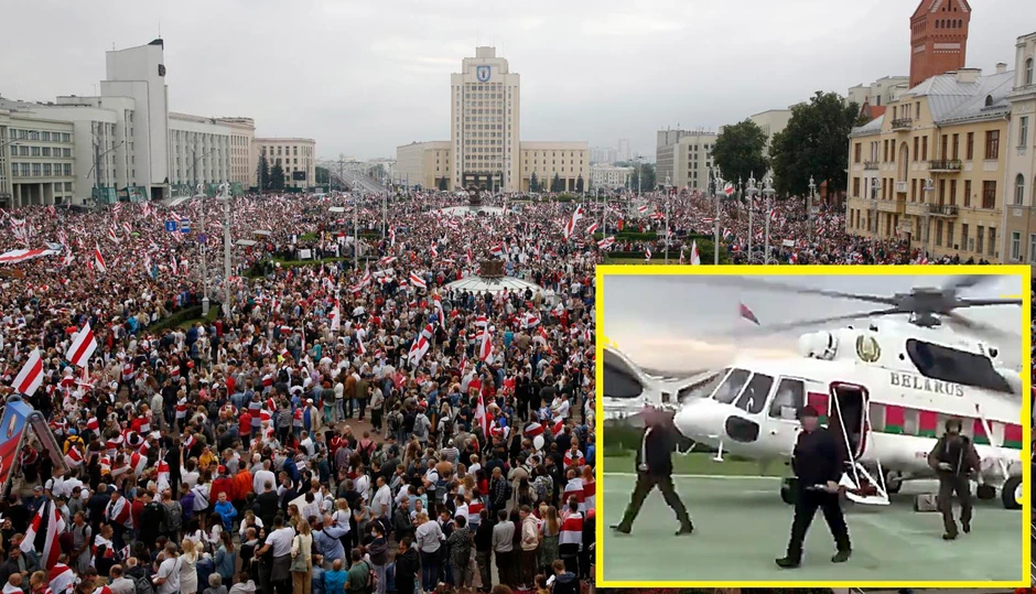 Iako se prvo pojavila informacija da je evakuisan, na drušvenim mrežama objavljen je video snimak kako helikopterom stiže u svoju rezidenciju u Minsku, ispred koje se održava protest opozicije. Na snimku se vidi kako nosi automatsku pušku, dok na sebi ima pancir, a u njegovoj pratnji su pripadnici vojske.