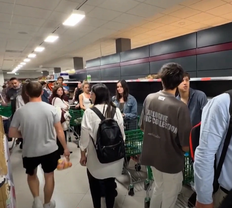 Kako su mnogi građani Španije i Portugala posle nestanka struje ostali bez tekuće vode, ljudi su panično požurili da kupuju i prave zalihe vode. Scene u prodavnicama su kao u vreme pandemije korone, sve se kupuje, dugotrajno mleko, hleb, konzerve slatkiši...