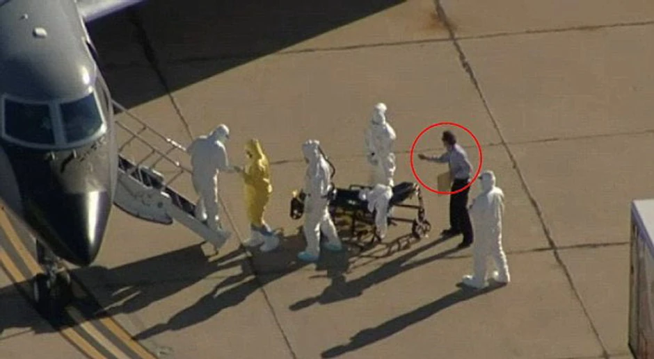 Na video-snimku koji je prenosio transport Amber Vinson, medicinske sestre iz Dalasa zaražene ebolom, među timom lekara pojavio se i misteriozni čovek koji jedini nije nosio nikakvo zaštitno odelo čime je stovrio paniku u javnosti.