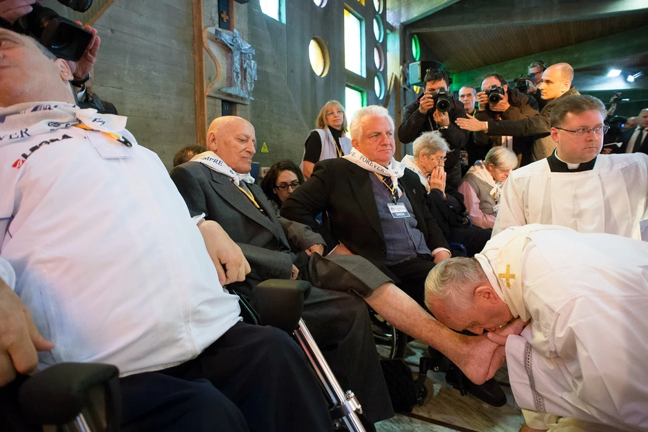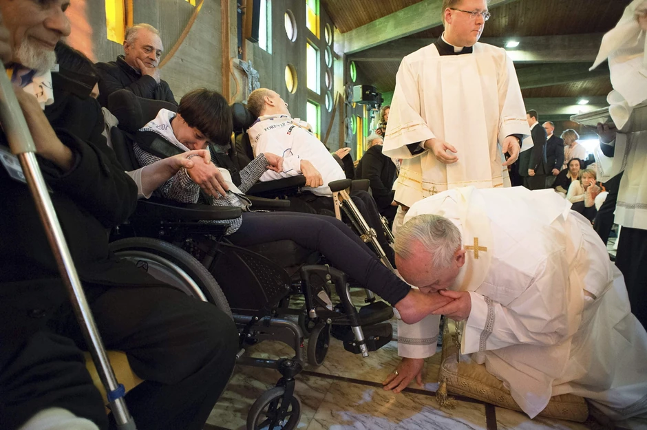 Papa Franja je na veliki četvrtak oprao noge dvanaestoro ljudi, tradicija koja se obavlja na Veliki četvrtak. Franja je ponovo malo prekršio pravila, pošto je među njima bila jedna žena i jedan pripadnik druge vere. Poenta ovog katoličkog rituala je da pokaže da je prvi čovek Vatikana samo skromni sluga naroda.