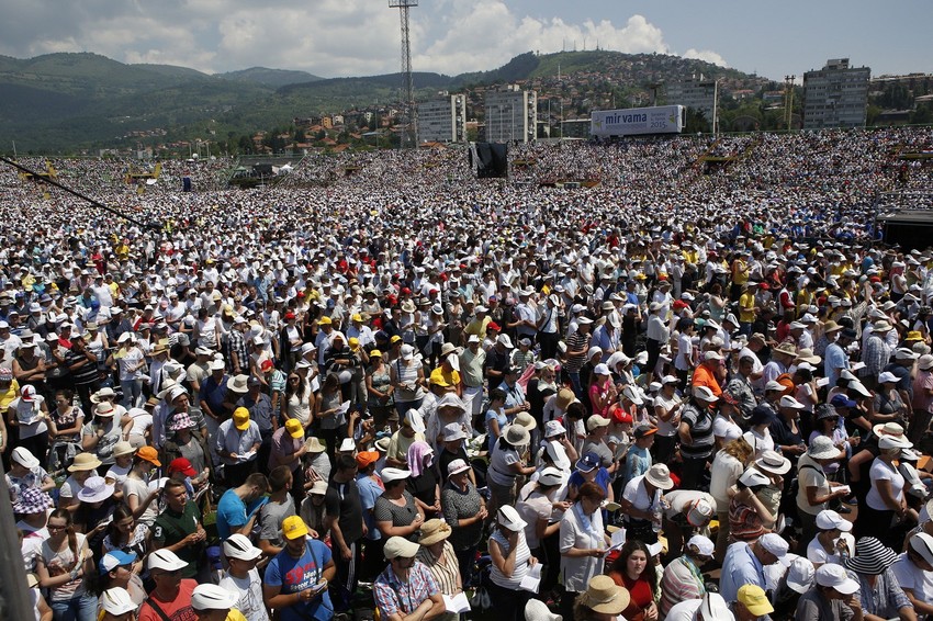 Papa Franja je tokom današnje posete Sarajevu doživeo manju nezgodu - pukao mu je štap, preneli su mediji u Bosni i Hercegovini.