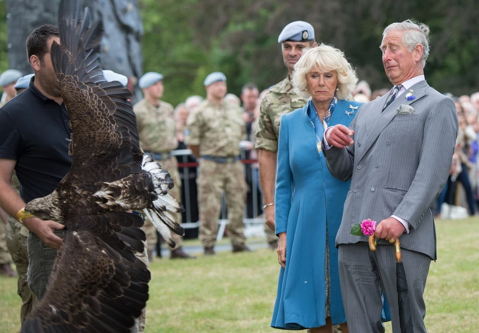 Prilikom obilaska izložbe cveća u Norfolku, princ je želeo da dodirne orla, ali se ptici to nije dopalo, pa je pokušala da poleti. Čarls se uplašio i odstupio, a isto je učinila i vojvotkinja Kamila.
