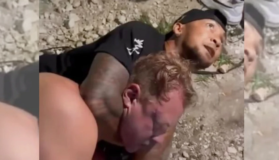 Snimak, navodno nastao u Uluuatuu tokom noćnog izlaska, prikazuje muškarca bez majice kojeg okružuju besni meštani, dok ga majstor borilačkih veština i vlasnik teretane Belda Brig Sando drži na tlu sa stisnutom rukom preko njegovog vrata. Muškarac je gotovo poplaveo i nakratko ostao bez svesti dok mu Sando viče: „Poštuj lokalno stanovništvo“.