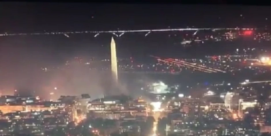 RT navodi da demonstranti pale manje vatre širom Vašingtona i da dim delimično prekriva čuveni Vašingtonov spomenik.