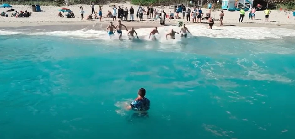 Nakon liturgije i osvećenja vode u crkvi Svetog Simeona Mirotočivog u Majamiju, plivanje za Časni krst održano je na plaži u obližnjem Helendej biču.