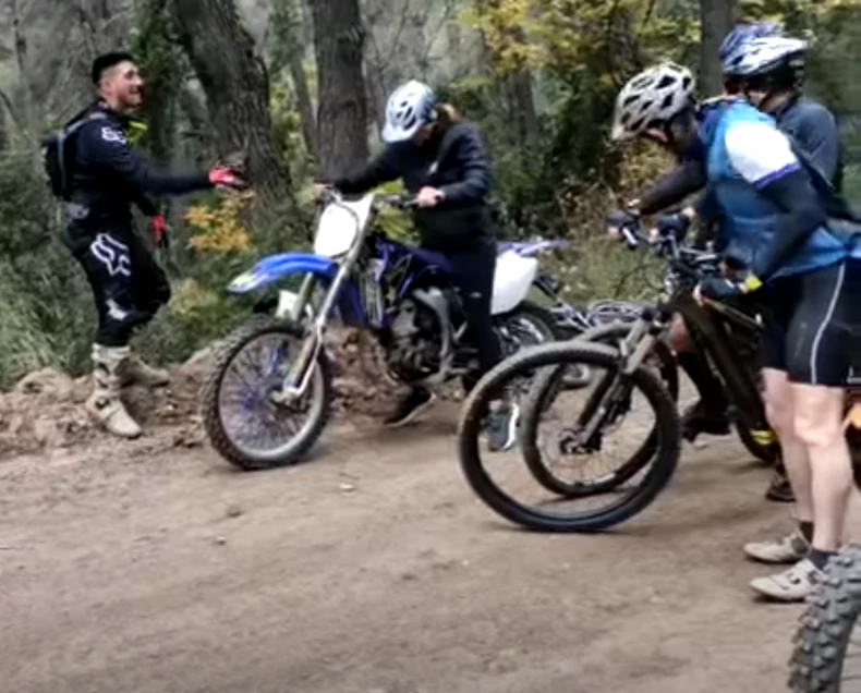 Prošlog vikenda pojavili su se video i foto snimci na kojima se vide Micotakis i njegova supruga u društvu vozača moto krosa na planini Parnita, 45 kilometara od Atine, prenosi "Gardijan".