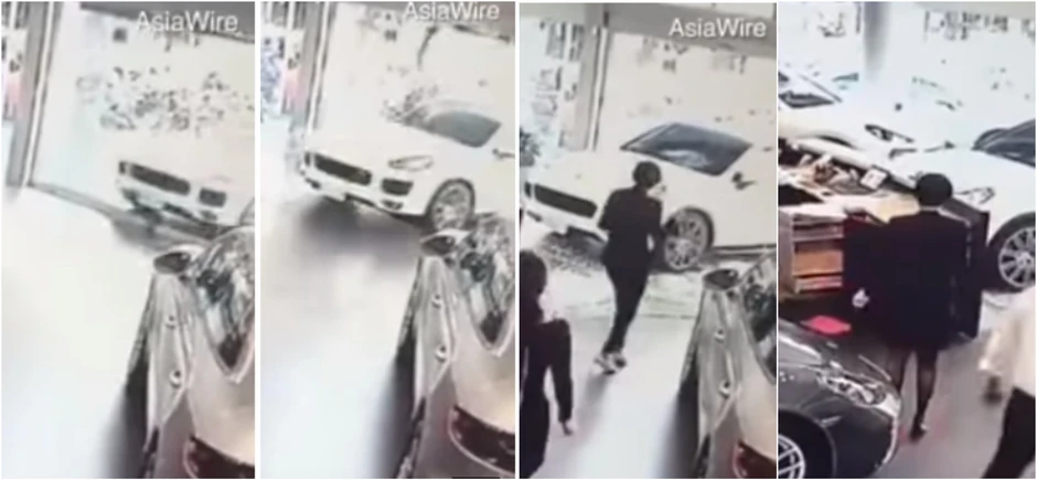 Zaposleni u predstavništu kompanije Porše na Tajvanu bili su žrtve beskrupuloznog bogataša koji je iz bizarnih razloga odlučio da se sa svojm automobilom zakuca u izlog njihovog poslovnog objekta.