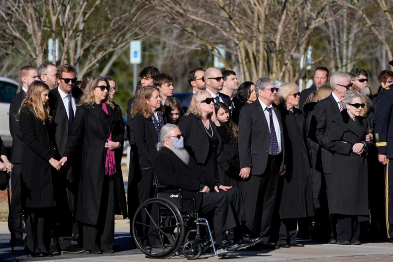 Porodica Karter, uključujući četvoro dece bivšeg predsednika i brojne unuke i praunuke, prati kovčeg u procesiji koja ce njegove ostatke proneti kroz njegov voljeni rodni grad Plejns na putu za Atlantu.
