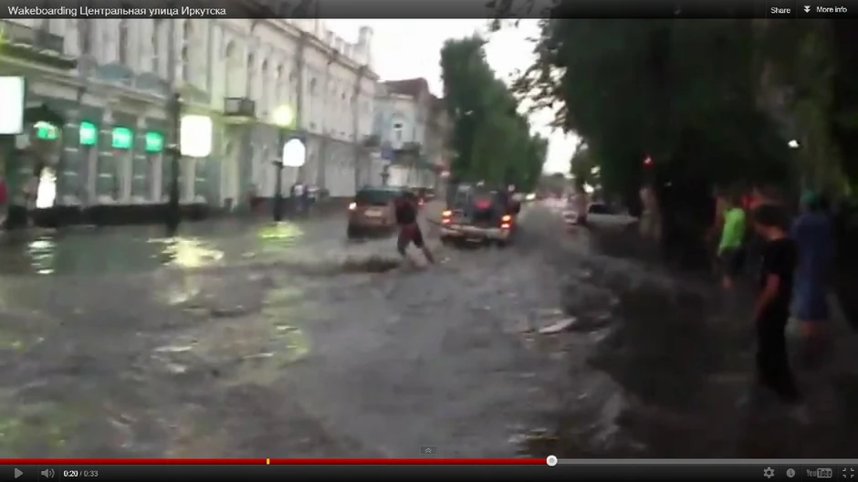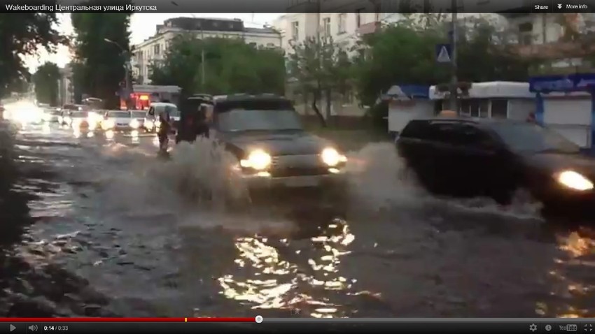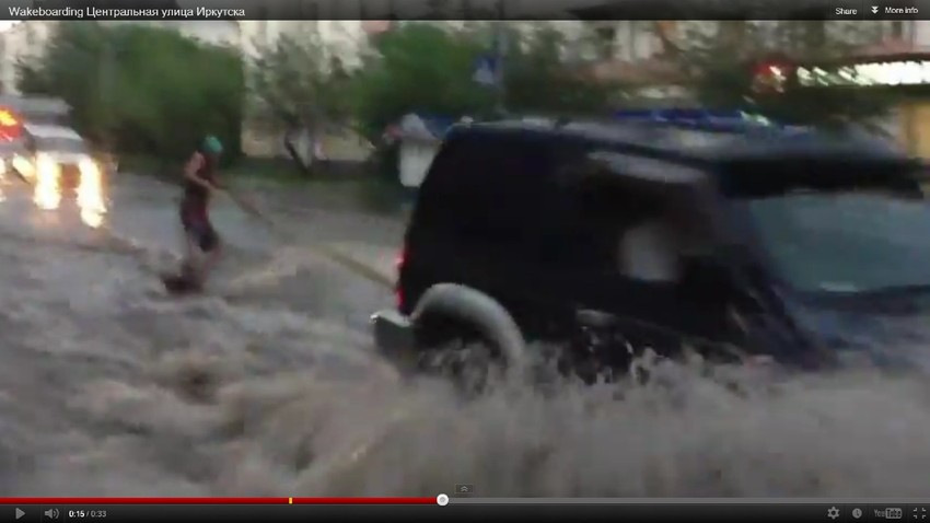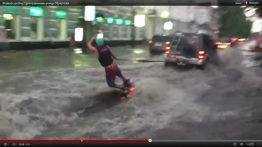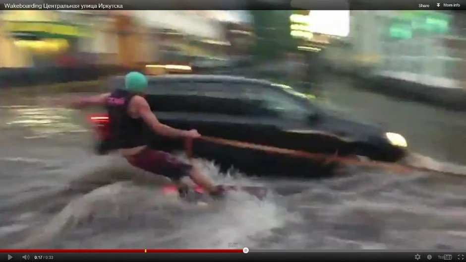 Kada su obilne kiše poplavile glavnu ulicu u Irkutsku, jednom od najvećih gradova u Sibiru, jedan mladić je shvatio da to može odlično da iskoristi za zabavu.