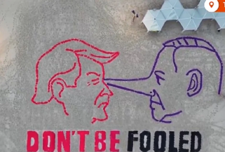 Velika umetnička instalacija pojavila se na plaži u Tel Avivu, prikazujući Donalda Trampa i Benjamina Netanjahua