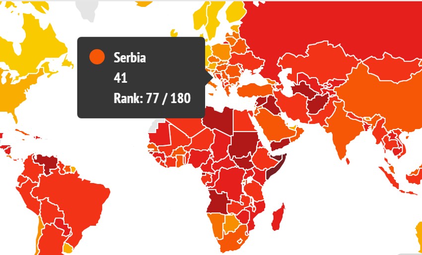 Srbija je ocenjena sa 41. bodom što je plasman na 77. mestu liste.