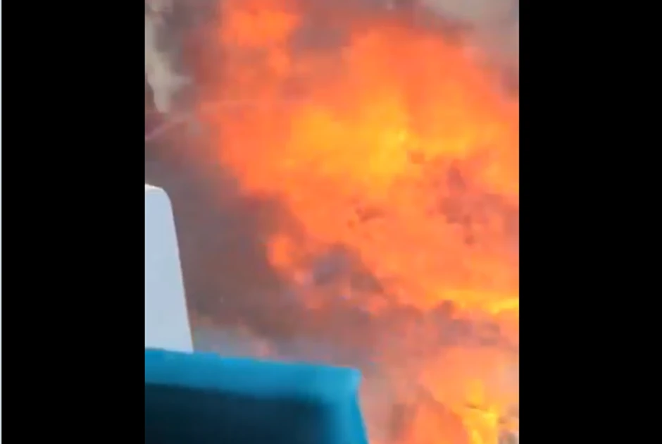 Snimci prikazuju uništene autobuse i kamione, kao i kasetnu municiju