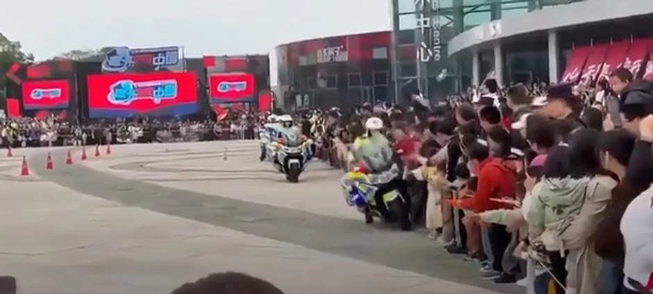 Tokom Dana otvorenih vrata u sedištu policije u Sužouu, u Kini, došlo je do teške nesreće. Policajka je izgubila kontrolu nad svojim motociklom i zabila se u posetioce. Posebno su stradala deca u prvom redu, koja su od siline udarca bukvalno odbačena u vazduh.