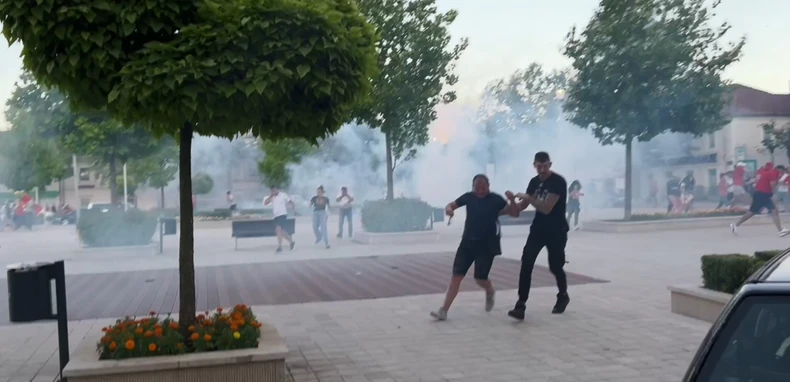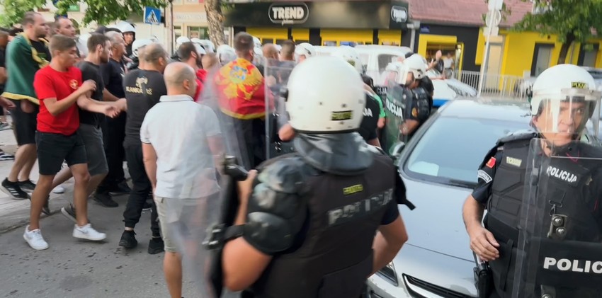 Kako je javio reporter TVCG sa lica mesta, bilo je žestokih okršaja. Bacali su stolice i flaše. Policija je na kraju upotrebila suzavac i trenutno razbila pokušaj da se dve grupe spoje.