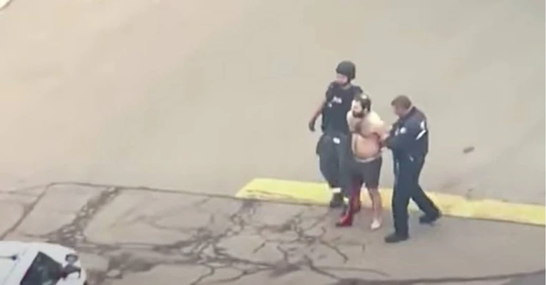 Na video snimcima sa mesta događaja koje su emitovale lokalne televizijske stanice vidi se bradati muškarac, koji ima samo bokserice na sebi i bos je, kojeg u lisicama odvode iz prodavnice i ubacuju u vozilo Hitne pomoći. Prema tim snimcima, čini se da osumnjičeni ima povređenu nogu.