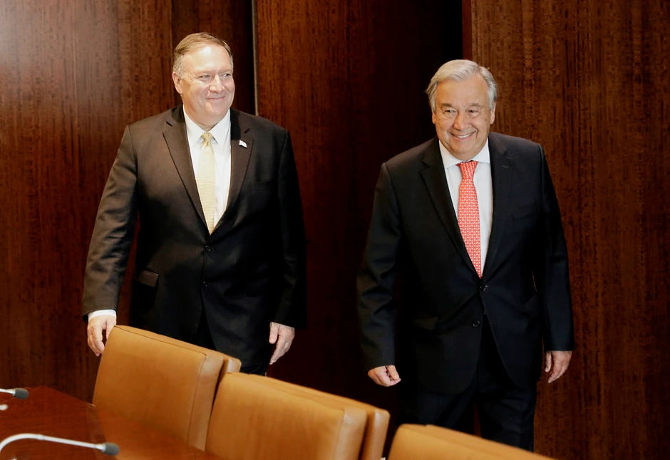 Ona je navela da je Pompeo razgovarao sa Guterešom o razvoju događaja na Bliskom istoku, kao i o trajnom značaju Povelje UN, što je bila tema otvorene debate Saveta bezbednosti UN. Pompeo i Stoltenberg su razgovarali o napadima Irana na aviobaze u Ajn el Asadu i Erbilu u Iraku, kao i o "stalnoj pretnji koju Teheran predstavlja po region".