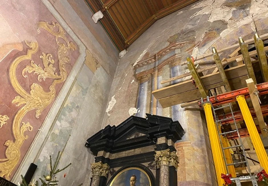 Prezbiterij i glavni oltar Majke Božje Remetske ne može se uočiti od oštećenja jer je sve prekriveno skelom i takozvanim mostom koji prekriva strop radi sigurnosti od padanja maltera i ostaloga, poručili su iz Župe.