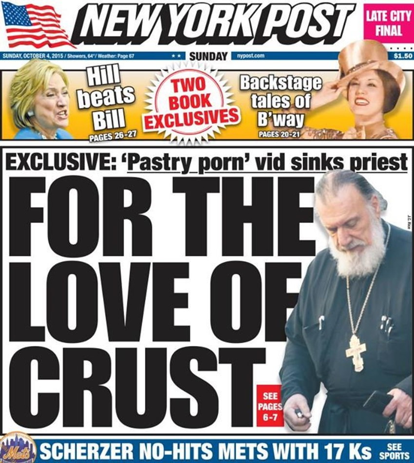 U jednom video klipu vidi se sveštenik kako u beloj majici sedi na krevetu i posmatra svoju dosta mlađu ljubavnicu kako, kao deo fetiš performansa, sa viskim štiklama gnječi hleb i bananu umotanu u celofan.