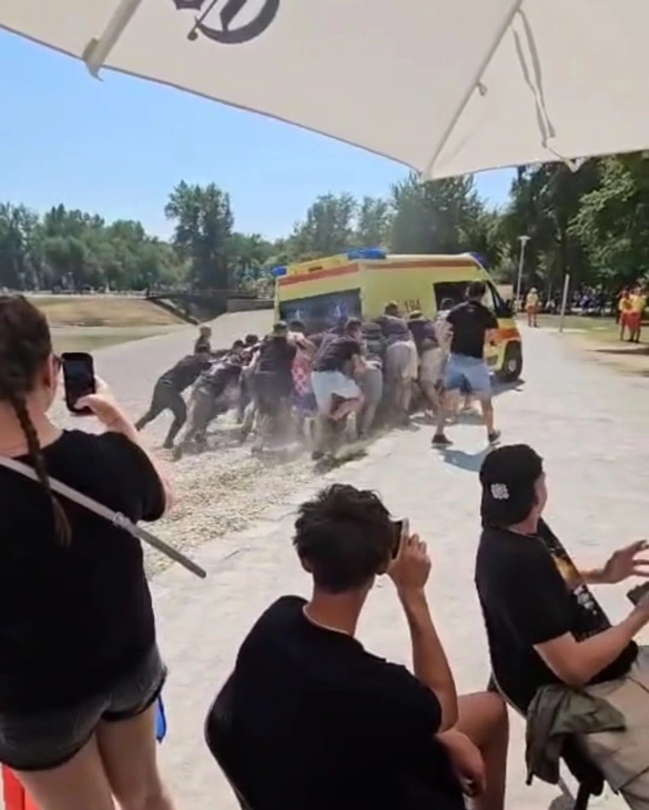 Na društvenim mrežama pojavila se fotografija vozila Hitne pomoći zaglavljenog na kamenitom terenu oko Bundeka, gde se nalazi navijačka zona za posetioce koncerta Marka Perkovića Tompsona na Hipodromu.