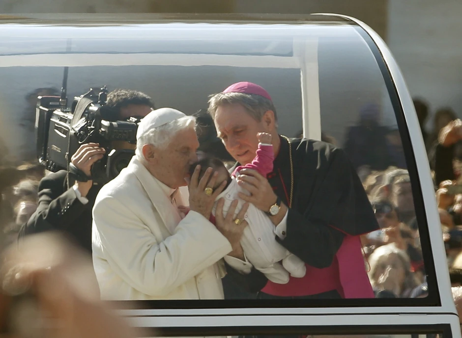 sestra Marija, drveni krst iz rodne Bavarske, pozlaćeni budilnik koji je dobio na poklon nakon konklave 2005. godine, i tanjir na kojem je utisnut papski grb.