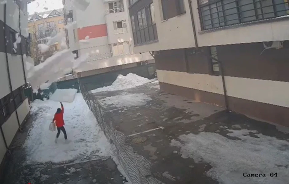 Najverovatnije je da su sneg i led počeli da se tope. Ogroman komad leda pao je sa visine od 20 metara pravo na ženu.