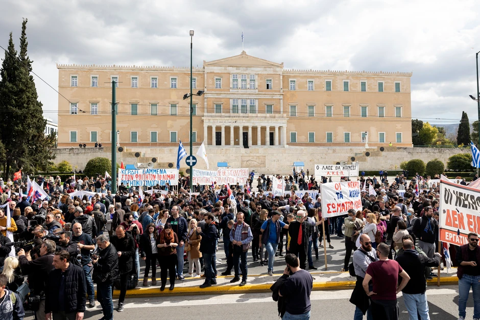 Demonstranti su preplavili trg Sintagma ispred parlamenta u Atini, mašući transparentima na kojima je pisalo "Nećemo zaboraviti, nećemo oprostiti" i "Postaćemo glas svih mrtvih".