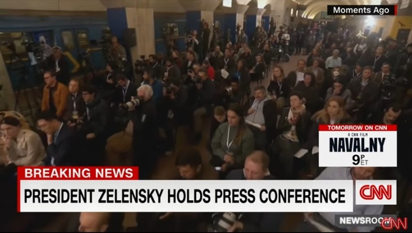 Nesvakidašnja lokacija – metro stanica Trg nezavisnosti koja se koristi kao sklonište - izabrana je za održavanje njegove konferencije zbog ratnih uslova. U jednom trenutku, dok je govorio o ljudima koji su izgubili svoju decu, Volodimir Zelenski se jedva suzdržao da ne pusti suzu, praveći bolnu grimasu koja se jasno videla na njegovom licu, ali su zato reagovali neki od prisutnih – jedna novinarka je zaplakala slušajući njegov govor uz pomoć telefona.