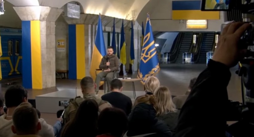 - Predsednik Zelenski je upravo završio konferenciju za štampu pred stotinama međunarodnih novinara. Zbog toga što je ratno vreme i zbog pretnji bombi odvijala se na platformi metro stanice Trg nezavisnosti koja se koristi kao sklonište - naveo je Leščenko.