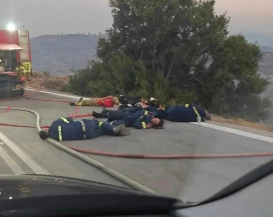 Fotografija vatrogasaca u Grčkoj, koja je objavljena na društvenim mrežama, rasplakala je mnoge. Oni su se celu noć borili sa vatrenom stihijom, pa legli na put kako bi se makar malo odmorili pre nove runde gašenja požara.