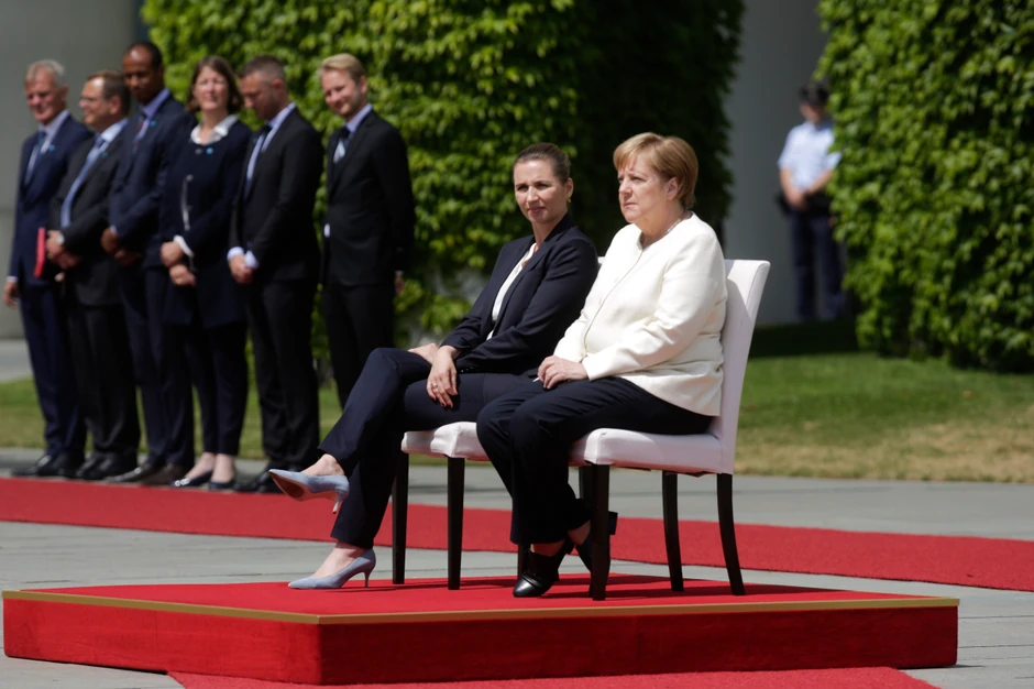 Kancelarka je, kršeći protokol, sedela tokom svečane ceremonije sa premijerom Danske u Berlinu danas.