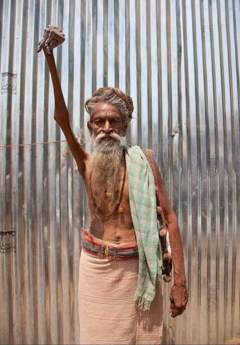 Indijac Amar Barati 1973. godine podigao je desnu ruku u znak poštovanja prema bogu Šivi i u znak protesta protiv ljudske agresije. Više od pola veka kasnije, 52 godine potom, Barati i dalje drži ruku podignutom.