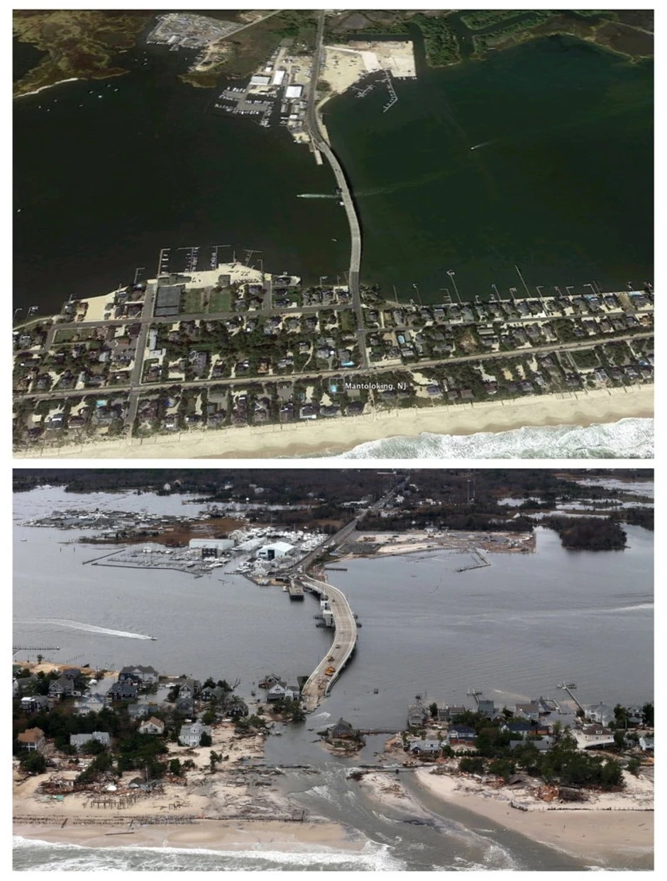 Nekada omiljeno letovalište bogatih Amerikanaca, ostrva u državi Nju Džerzi, teško su stradala u uraganu "Sendi". Tamo gde su nekad bili letnjikovci, uređene plaže i zabavni parkovi, danas su samo ruševine i poplavljene ulice. Kolika je šteta na ostrvima koja su postala poznata po MTV seriji "Džerzi šor" najbolje se vidi iz fotografija pre i posle tragedije.