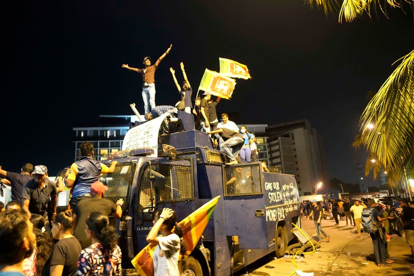Demonstranti su u sredu ispunili ulice Kolomba i, nakon što su se suočili sa policijom i vojnom silom i debelim suzavcem, preuzeli su kancelarije Vikremesingea, zahtevajući od njega da podnese ostavku na mesto premijera i privremenog predsednika.
