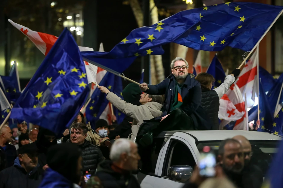 Demonstracije su nastavljene šesti dan u više gradova protiv odluke da obustavi pregovora zemlje o pridruživanju EU, a policija u Tbilisiju sinoć je potisnula demonstrante iz centralne avenija Rustaveli gde se nalazi gruzijski parlament.