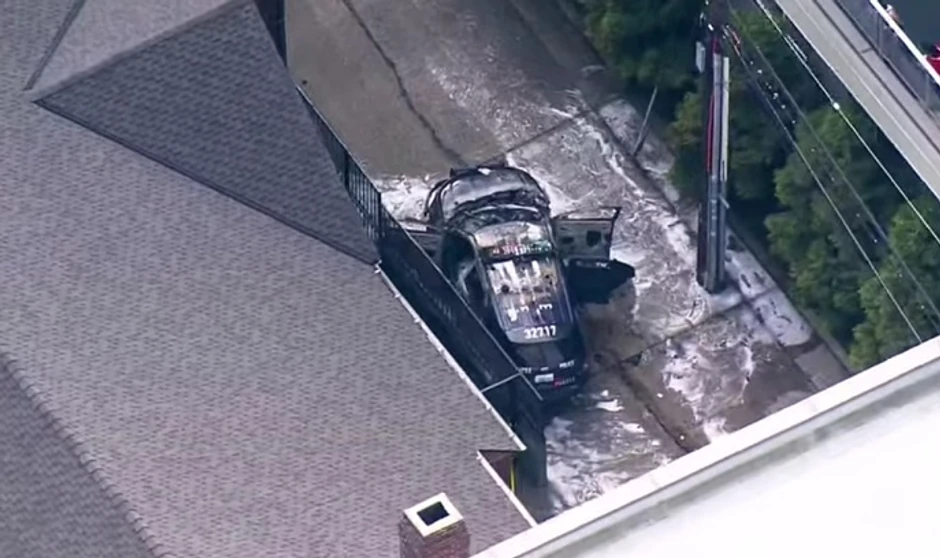 Vlasti su saopštile da je napadnuti policajac pretrpeo blaže opekotine i da je na bolovanju. Na snimku iz vazduha se vidi kako auto guta vatra, kao i delimično zapaljeni komad drveta koji visi na vratima vozača.