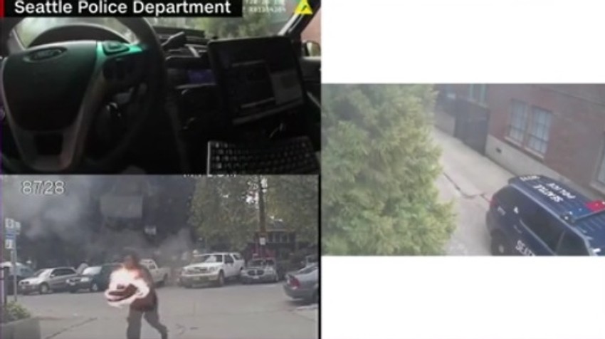 Jedan čovek pokušao je da baci goruću baklju na policijsko vozilo dok je službenik bio unutra, saopštile su vlasti Sijetla.