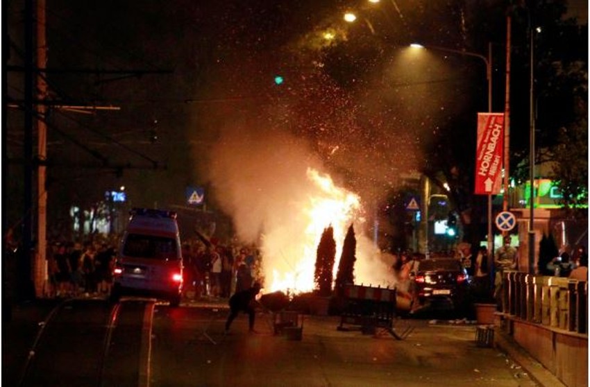 Sukobi su izbili sinoć kada su neki od desetine hiljada učesnika protesta pokušali da probiju policijski kordon oko vladinih objekata, prenosi AP.
