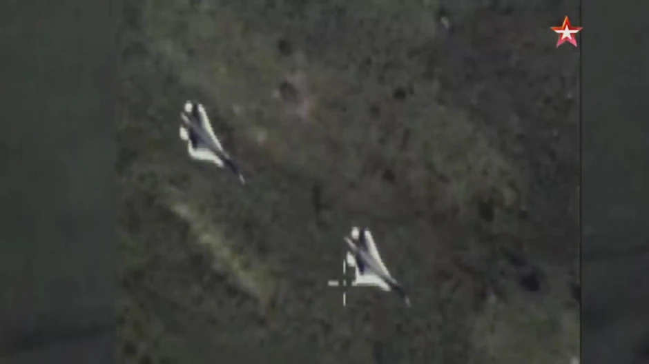 Snimak je napravljen za vreme vojnog konkursa Avijadarts 2018. Lovci su imitirali borbeni okret i napad na kopnene ciljeve uslovnog protivnika.