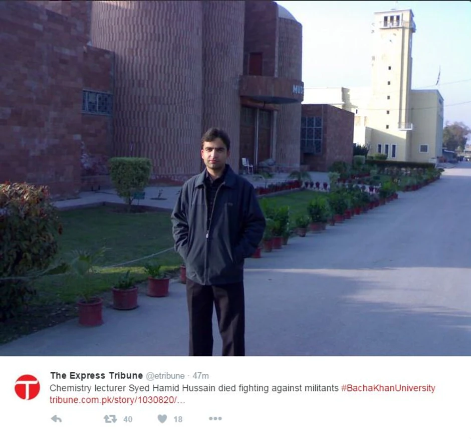 Profesor hemije Sajed Hamid Husein poginuo je pokušavajući da se obračuna sa jednim od napadača i spase studente.
