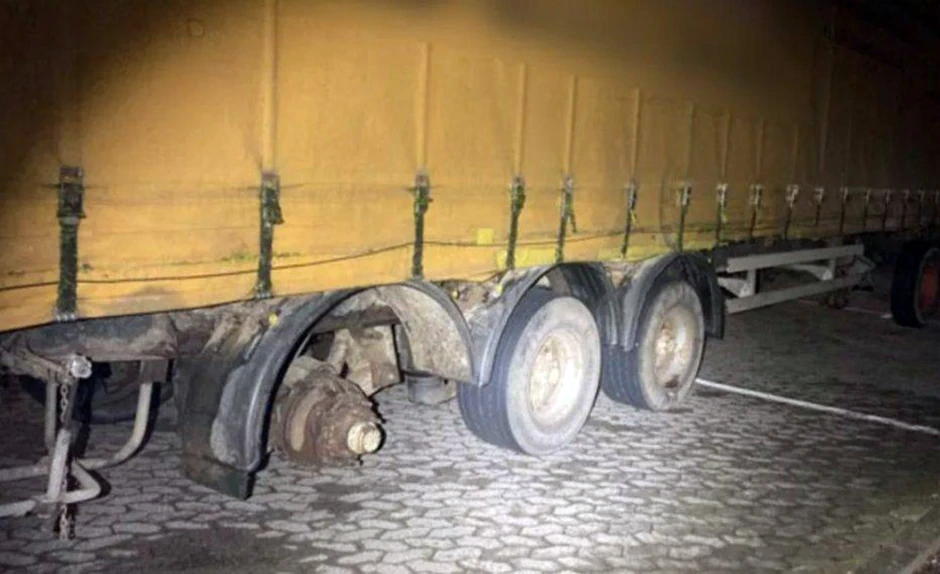 Naime, kako se vidi na fotografiji koju je zabeležila lokalna policija, u istočnom delu Hesena, kod Petersberga, policija je zaustavila traktor koji je vukao potpuno oštećenu prikolicu koja je nekada bila kamion.