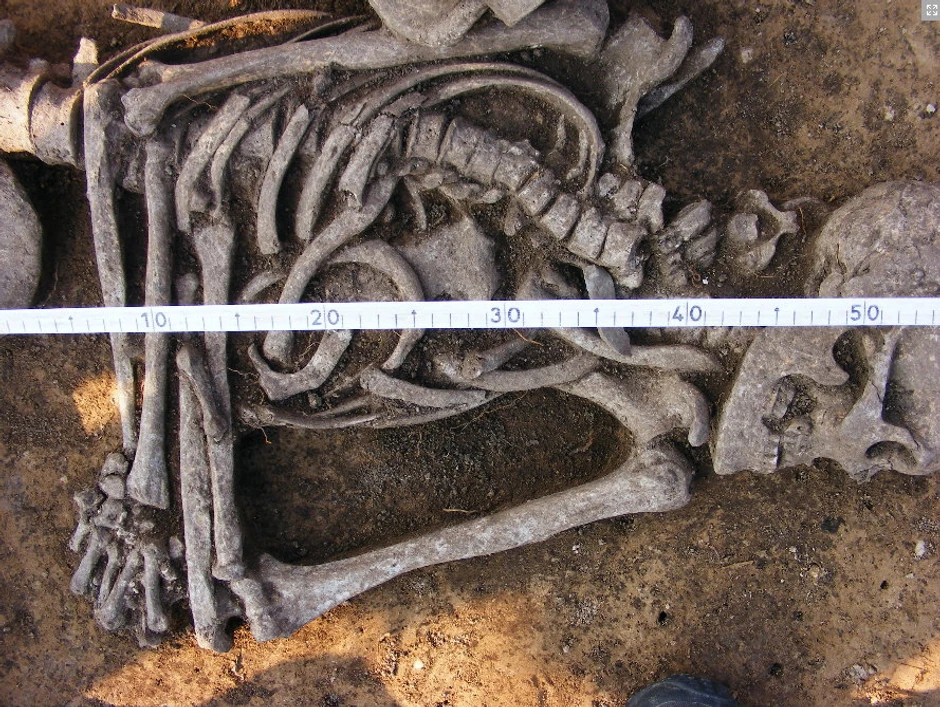 Pored nogu skeleta pronađena je i posuda jajastog oblika, kakve se se do sada mogle naći samo u ženskim grobnicama.