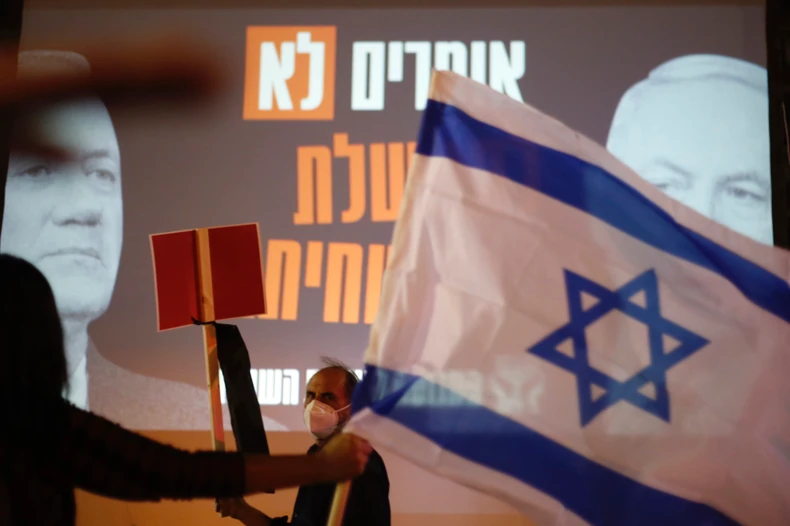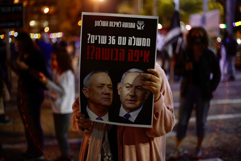 Nekoliko hiljada Izraelaca izašlo je večeras na ulice u Tel Avivu, protestujući protiv nove koalicije premijera Benjamina Netanjahua sa njegovim glavnim rivalom Benijem Gancom.