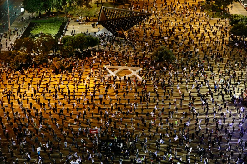 Protest je organizovao Pokret za kvalitet vlade u Izraelu, jedna od grupa koja je podnela zahtev za proveru legitimiteta vlade Vrhovnom sudu zemlje. Manji protesti su održani i u drugim gradovima širom Izraela, javlja AP.