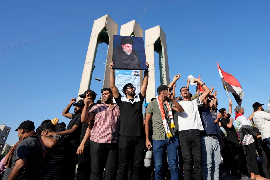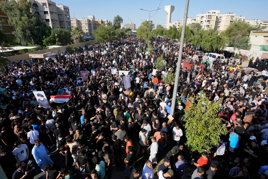 Oni su nosili portrete Sadra i njegovog oca, takođe istaknutog sveštenika, kao i iračke zastave.